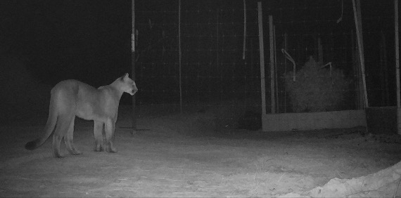 Abstract photo. Image of a mountain lion on a cannabis farm, captured on remote camera for this study.